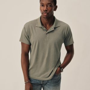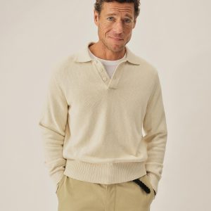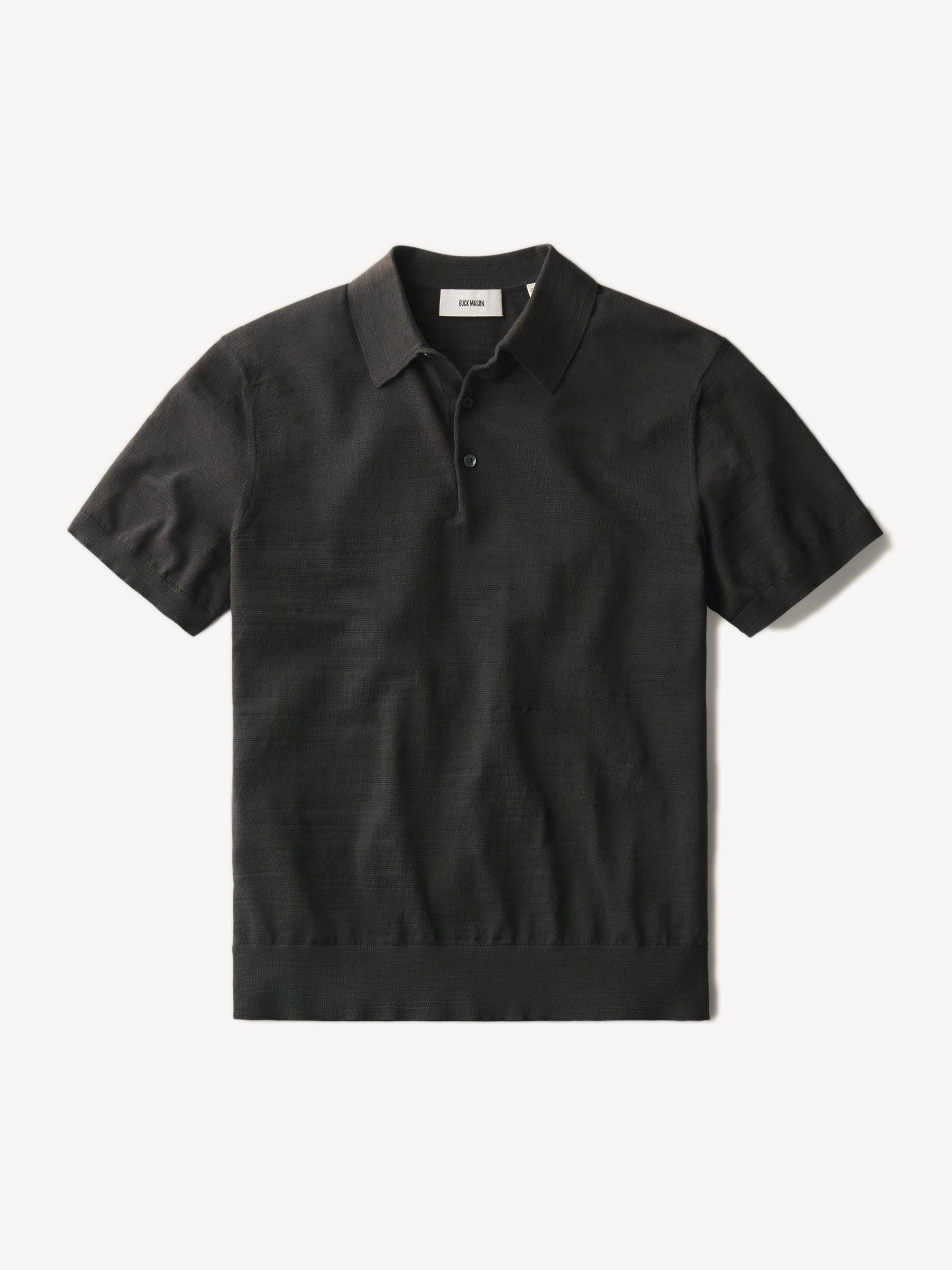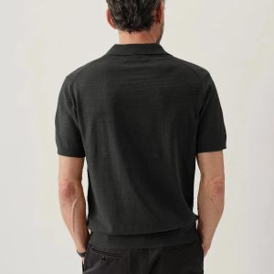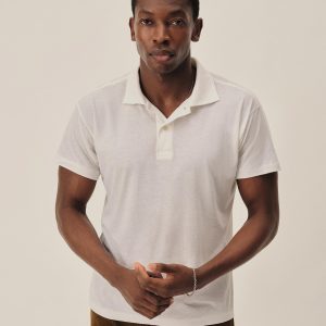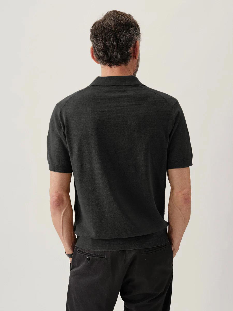 Classic fit sweater polo in yarn-dyed 16 gauge cotton jersey with light slub texture. Features a three-button closure and rib finishing at the cuffs and hem. Constructed with hand-linked seams for improved durability.