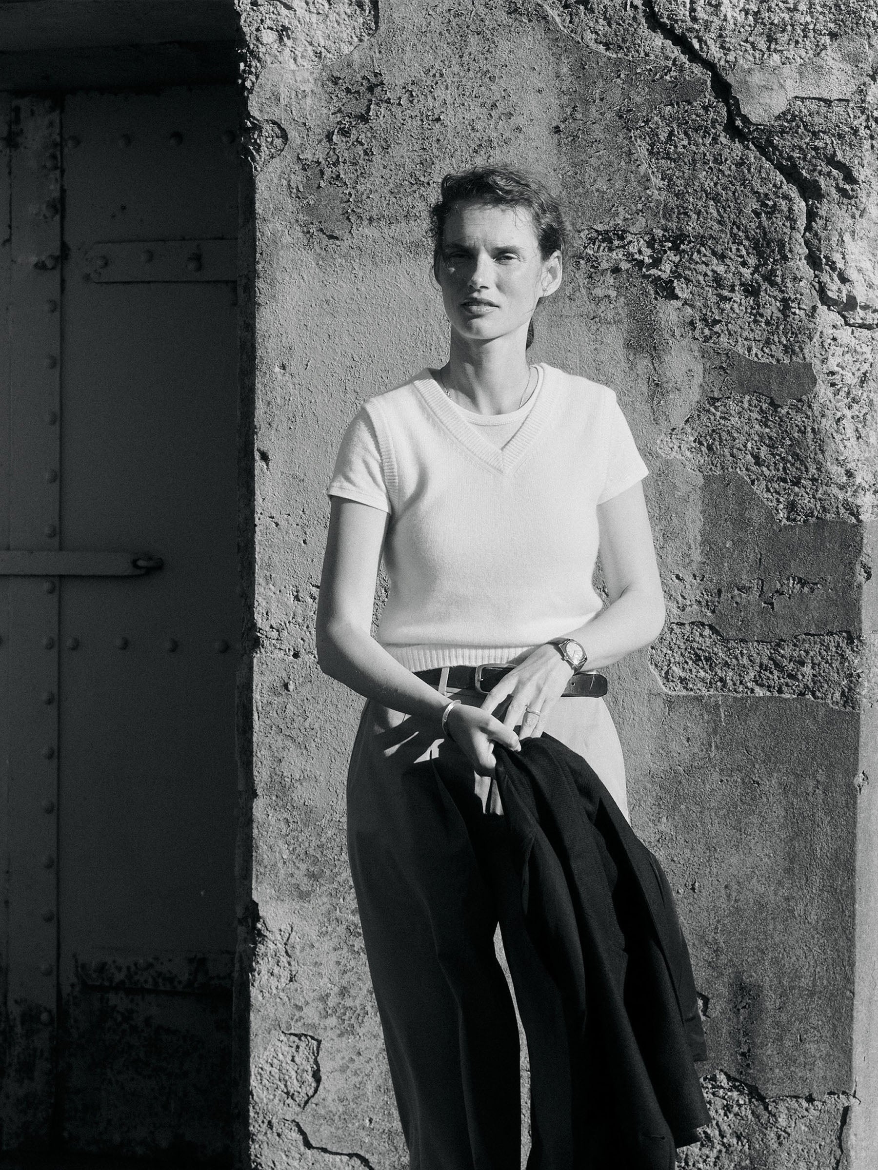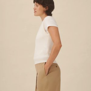 Inspired by vintage military knits, this sleeveless sweater is crafted from 100% cashmere with an airy, soft hand and clean jersey stitch throughout. Finished with rib trims at the neckline, armholes, and bottom band.