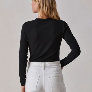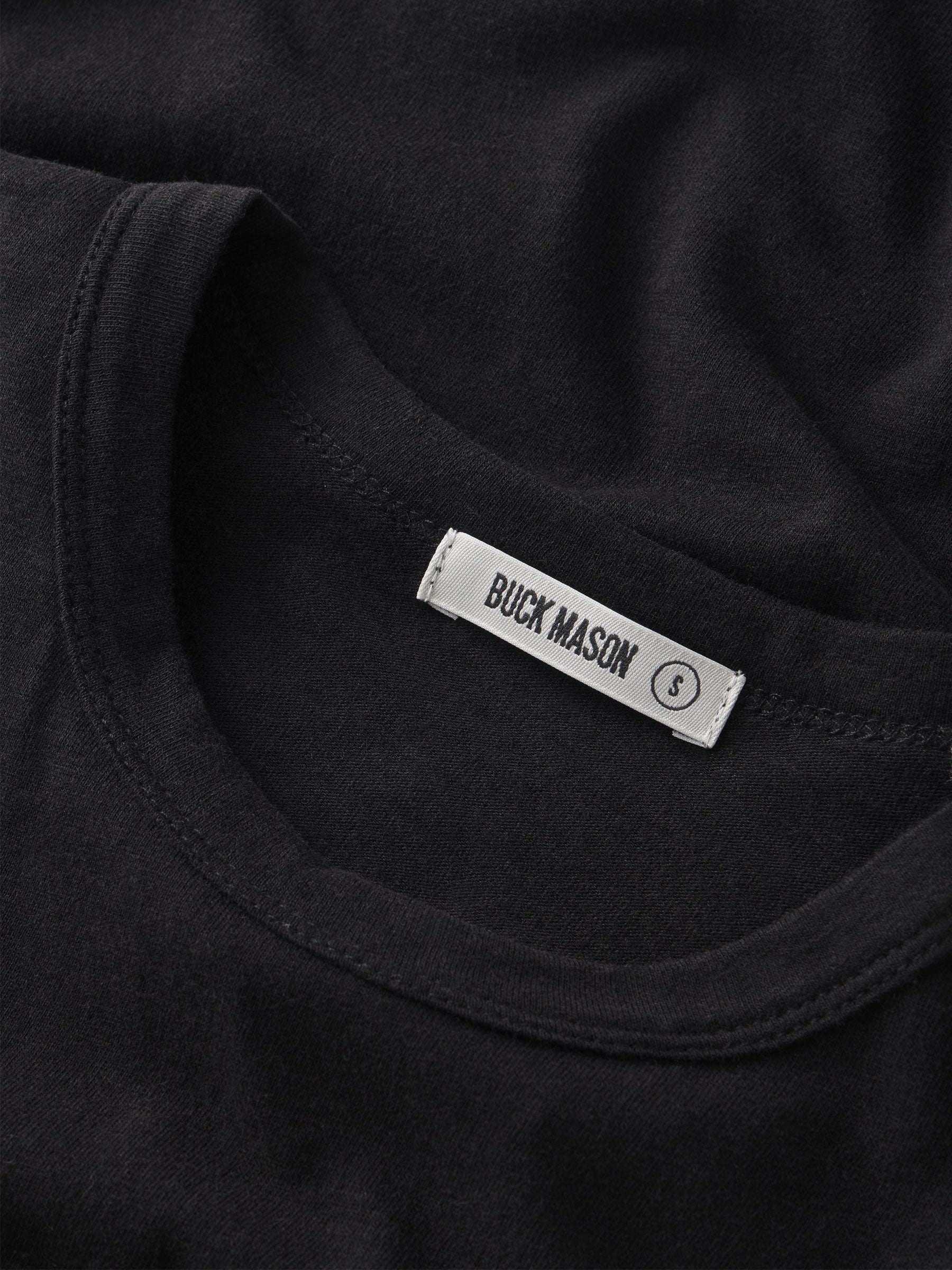 Slim fit long sleeve crewneck tee cut from a supersoft 130 GSM blend of bamboo, cotton, and wool. Features a straight hem, a self bound neck, and raised armholes that hug the contours of the shoulders. Garment washed for a lived-in feel.