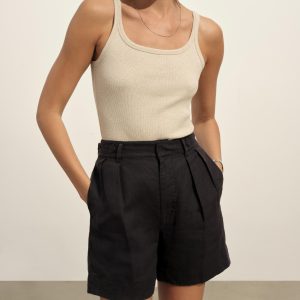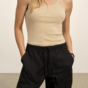 Slim fit, vintage-inspired camisole crafted from a delicate blend of Italian cotton and linen. Constructed from a structured 4×2 rib with a textured hand and a touch of stretch. Garment washed for vintage look and feel.