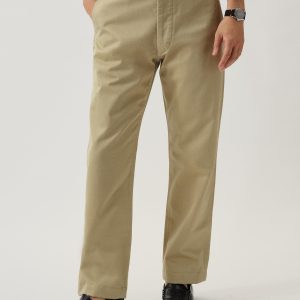 The El Camino Pant is a western-inspired trouser crafted from brushed Japanese cotton twill, built with 1960s-era frogmouth front pockets, waist tab closures, and a split waistband. Modeled after polished rodeo styles, the leg runs slim and straight from a mid-high rise down to a boot-ready opening.