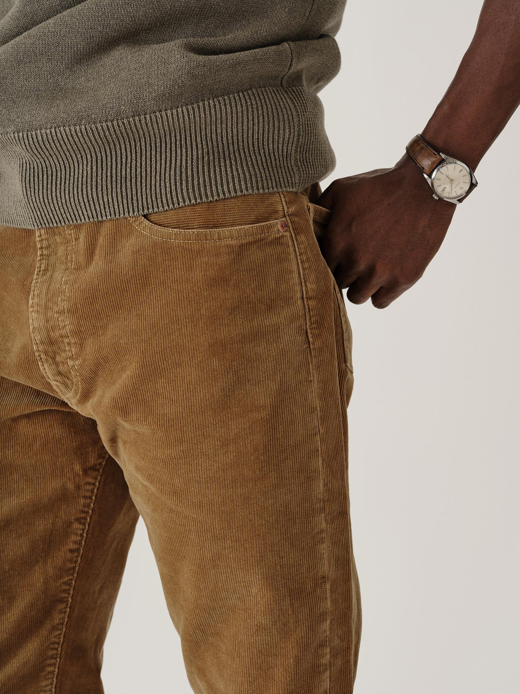 Five-pocket jean in our Ford Standard fit: mid-rise, straight through the thighs with a taper below the knee. Cut from 10 oz 14 wale cotton corduroy. Constructed with rivets at stress points with a zip fly. Garment washed for a lived-in feel.