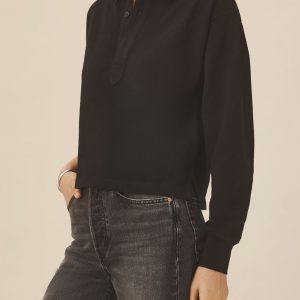 Inspired by the men’s Field-Spec Rugby, the women’s version is cut from 100% cotton in a dense slub jersey with a structured hand. Cut with a cropped, boxy fit and long sleeves, it’s designed with a woven twill collar and placket, tonal poly buttons at the center front, and herringbone-trimmed side slits.