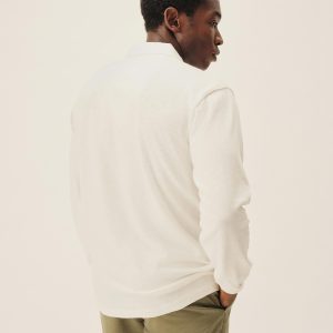 Classic fit long sleeve polo cut from yarn-dyed 310 GSM cotton jersey with the weight and durability of vintage rugby cloth. Details include a stepped hem with side seam vents, a three-button placket with shell buttons, and ribbing at the cuffs. Garment washed for a lived-in feel.