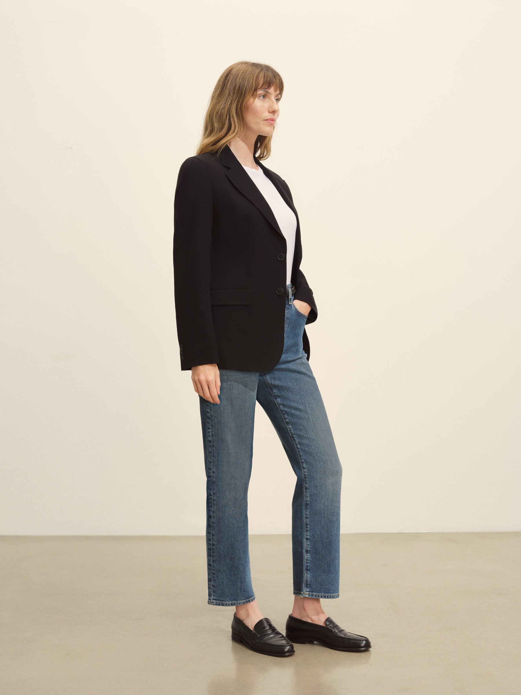 Expertly tailored and made to pair with matching trousers or denim, this jacket features all the true menswear-style details including two welt flap hip pockets, a welt chest pocket, single back vent and functional surgeons cuffs. It’s crafted from light and drapey 175 GSM fine Japanese wool with a 2/72 x 2/72 construction and fully lined for a smooth feel and easy drape. The natural shouldered silhouette is inspired by vintage 1950s menswear with a timeless fit and feel.