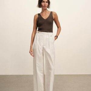 Slim-fit, vintage-inspired V-neck tank crafted from 100% Italian cotton yarn with a 3×3 deep rib structure. Designed with concealed chain threads and snaps beneath each shoulder to keep bra straps in place. Garment washed for a truly vintage, broken-in feel.