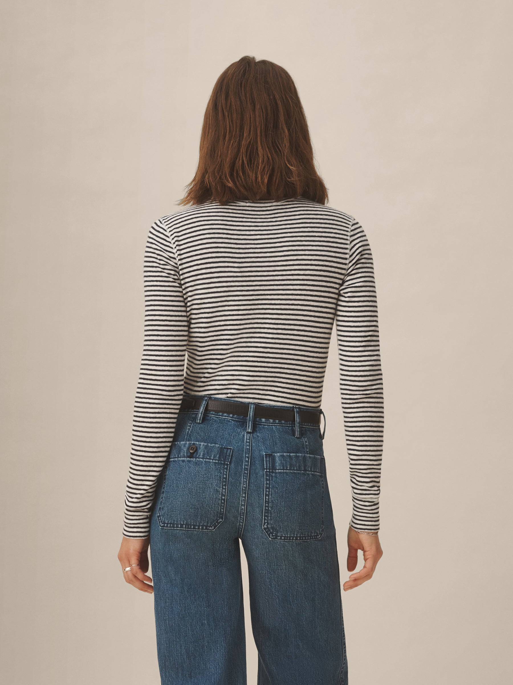 Crafted from a superfine, exceptionally soft cotton rib, this long sleeve is a go-to for effortless wear. It has a slim fit, a wide crewneck, cuffs, and a hip-length hem. Garment dyed and washed with softener for a lived-in feel.