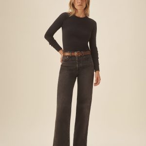 Crafted from a superfine, exceptionally soft cotton rib, this long sleeve is a go-to for effortless wear. It has a slim fit, a wide crewneck, cuffs, and a hip-length hem. Garment dyed and washed with softener for a lived-in feel.