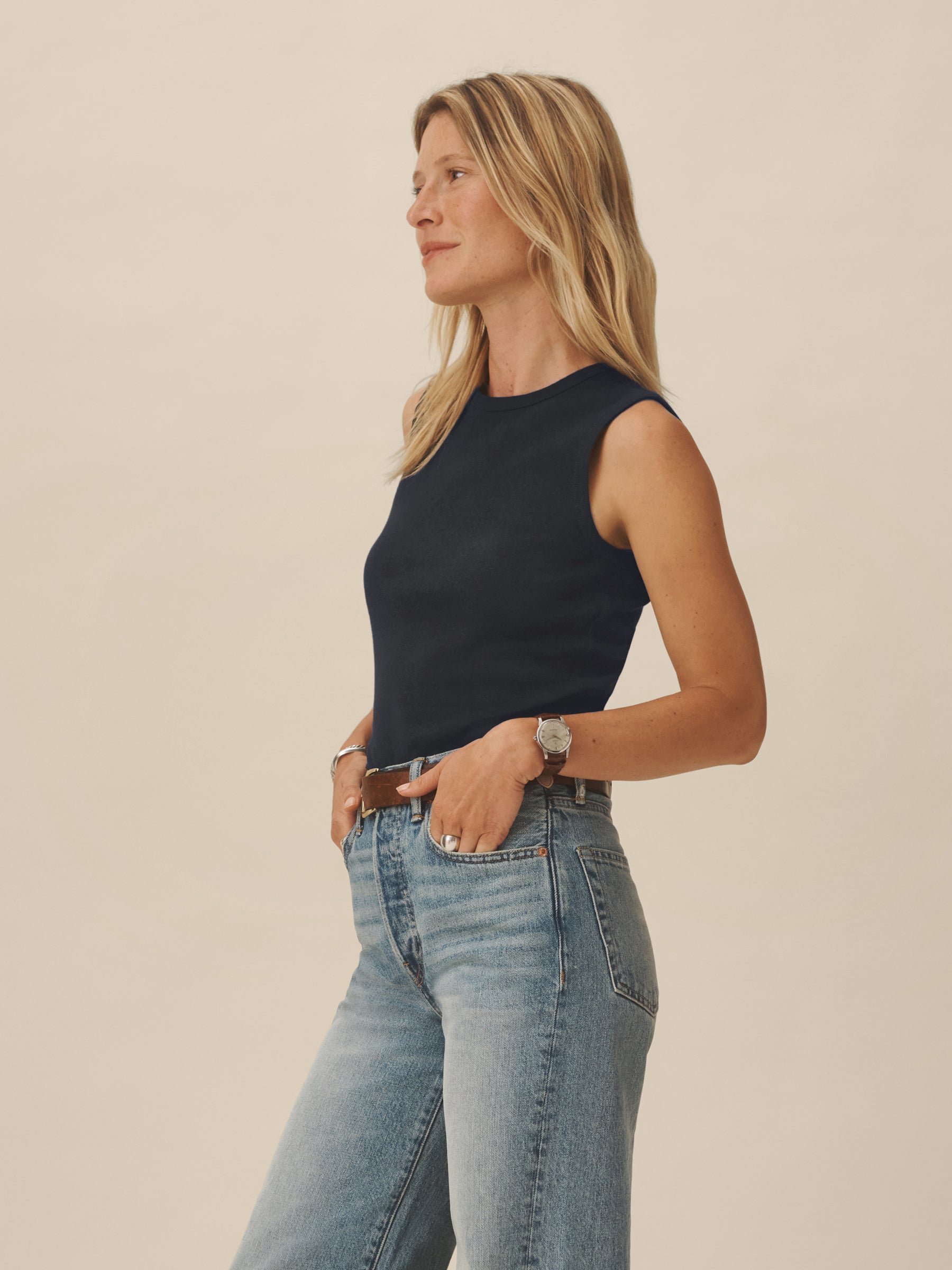 Classic slim-fit, vintage-inspired muscle tank made from a textured blend of 60% recycled cotton and 40% cotton rib that holds its shape.