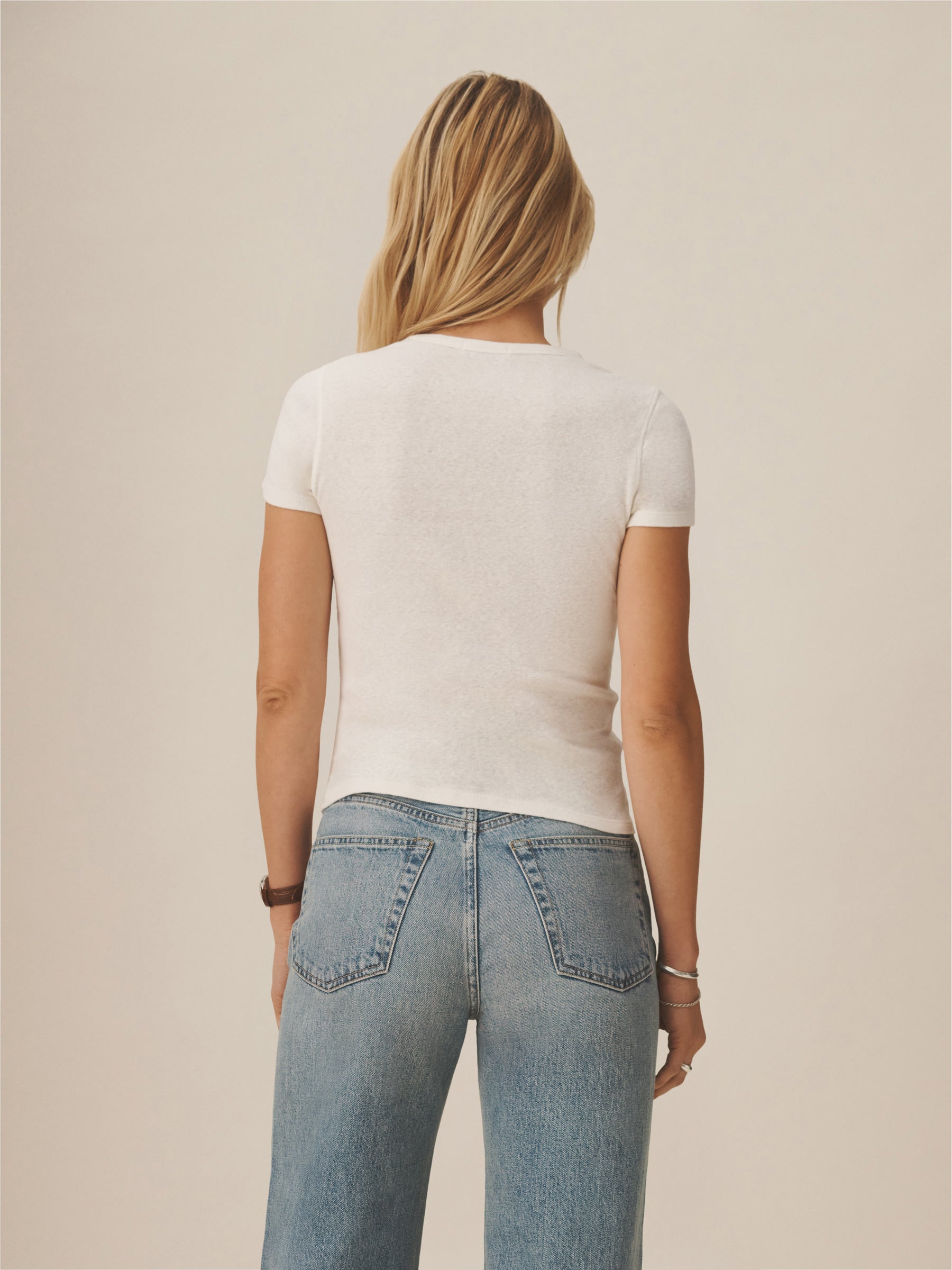 Our take on the classic baby tee, crafted from a superfine blend of new and recycled cotton with a subtle, textured rib. Garment washed for a lived-in look and feel.