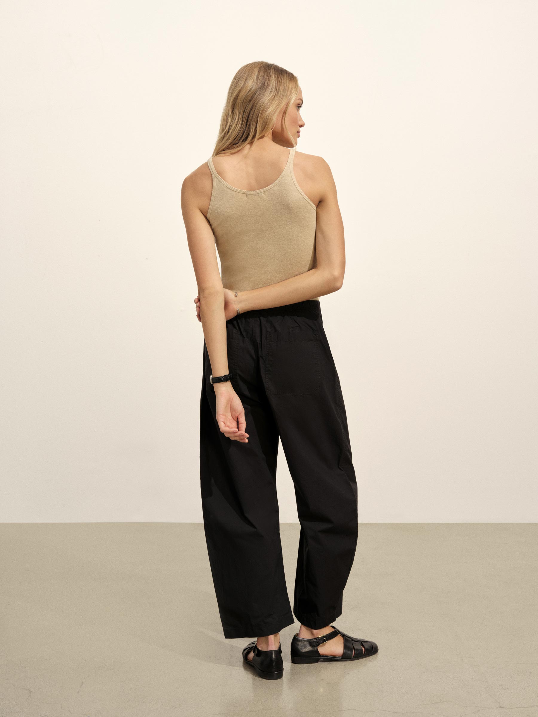 Slim-fit, vintage-inspired scoop tank made from a blend of 60% recycled cotton and 40% cotton. Featuring a combo of jersey fabric and scallop stitch details at the armholes and neckline, it also includes baby snaps for the bra holder.