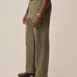 Our Herringbone Twill Field Pant pays tribute to the USMC work trouser turned WWII combat uniform, the P-41. “Repro” style fit with a high rise and full leg, cut from lightweight, 100% cotton HBT. Construction details include felled seams, 2 open back patch pockets, and bar tacks at points of stress. Stonewashed for a broken-in, vintage feel.