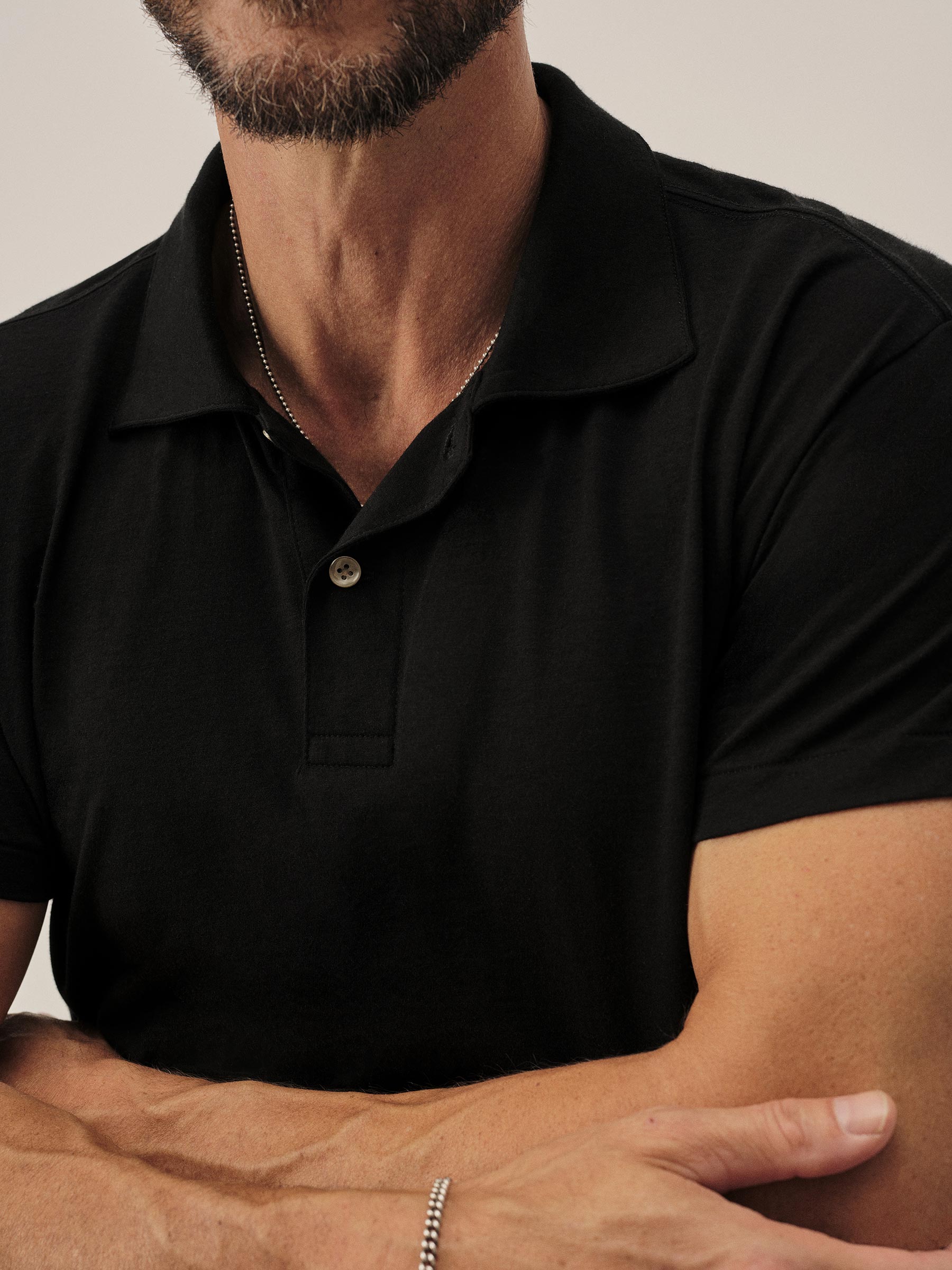 A short sleeve polo knit in Japan from a blend of cotton and cashmere — delivering a refined, ultra-lightweight feel at just 100 GSM. Piece-dyed for rich color and finished with genuine troca shell buttons, it’s designed with a slightly shortened body and a touch of extra room in the chest for ease and movement.