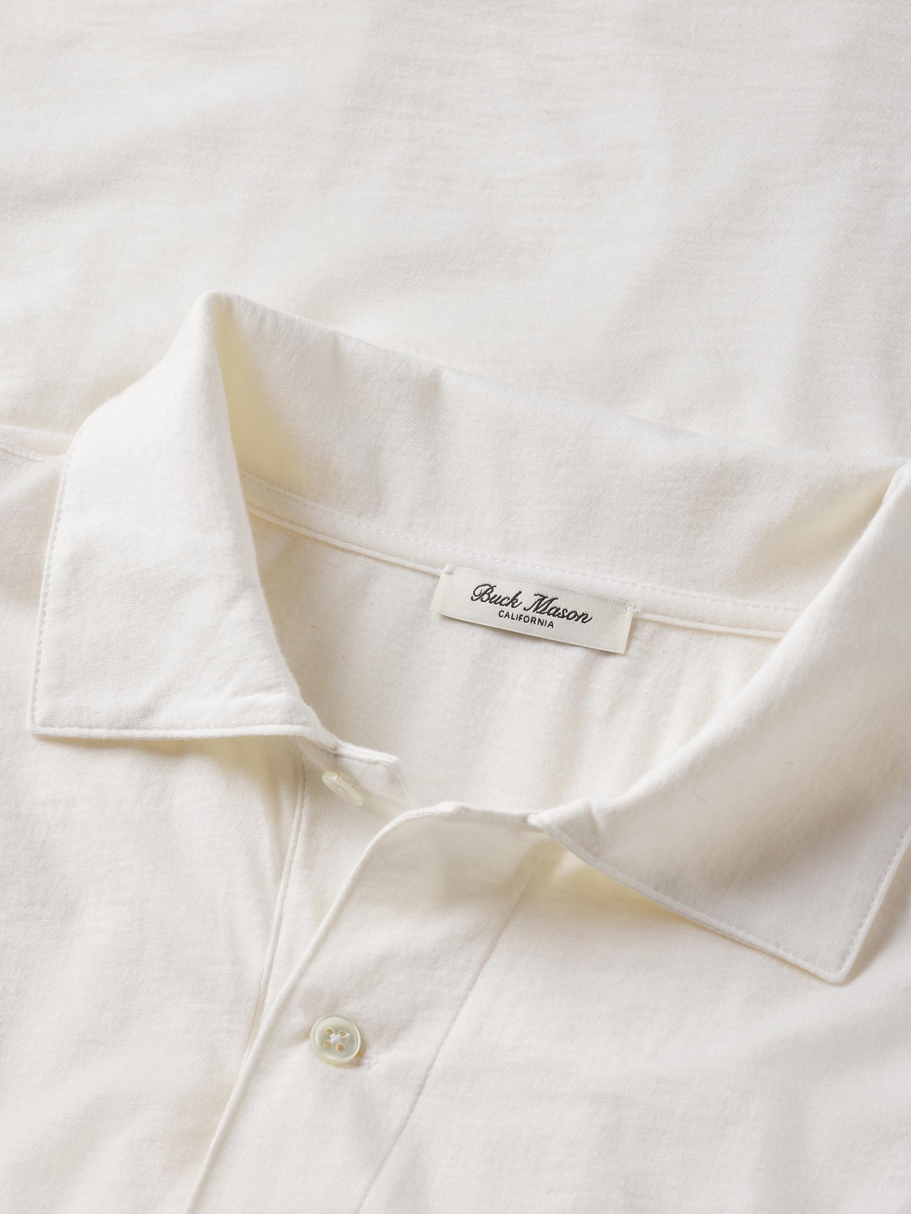 A short sleeve polo knit in Japan from a blend of cotton and cashmere — delivering a refined, ultra-lightweight feel at just 100 GSM. Piece-dyed for rich color and finished with genuine troca shell buttons, it’s designed with a slightly shortened body and a touch of extra room in the chest for ease and movement.