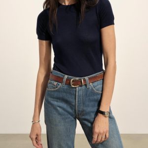 A slim henley crafted from a crepe wool-cotton blend yarn with natural texture and breathability. Designed with a flattering crew-meets-henley neckline, it’s constructed with a delicate pointelle drop-needle stitch throughout the body, functional mother-of-pearl shell buttons, and rib finishes at the cuffs and hem.