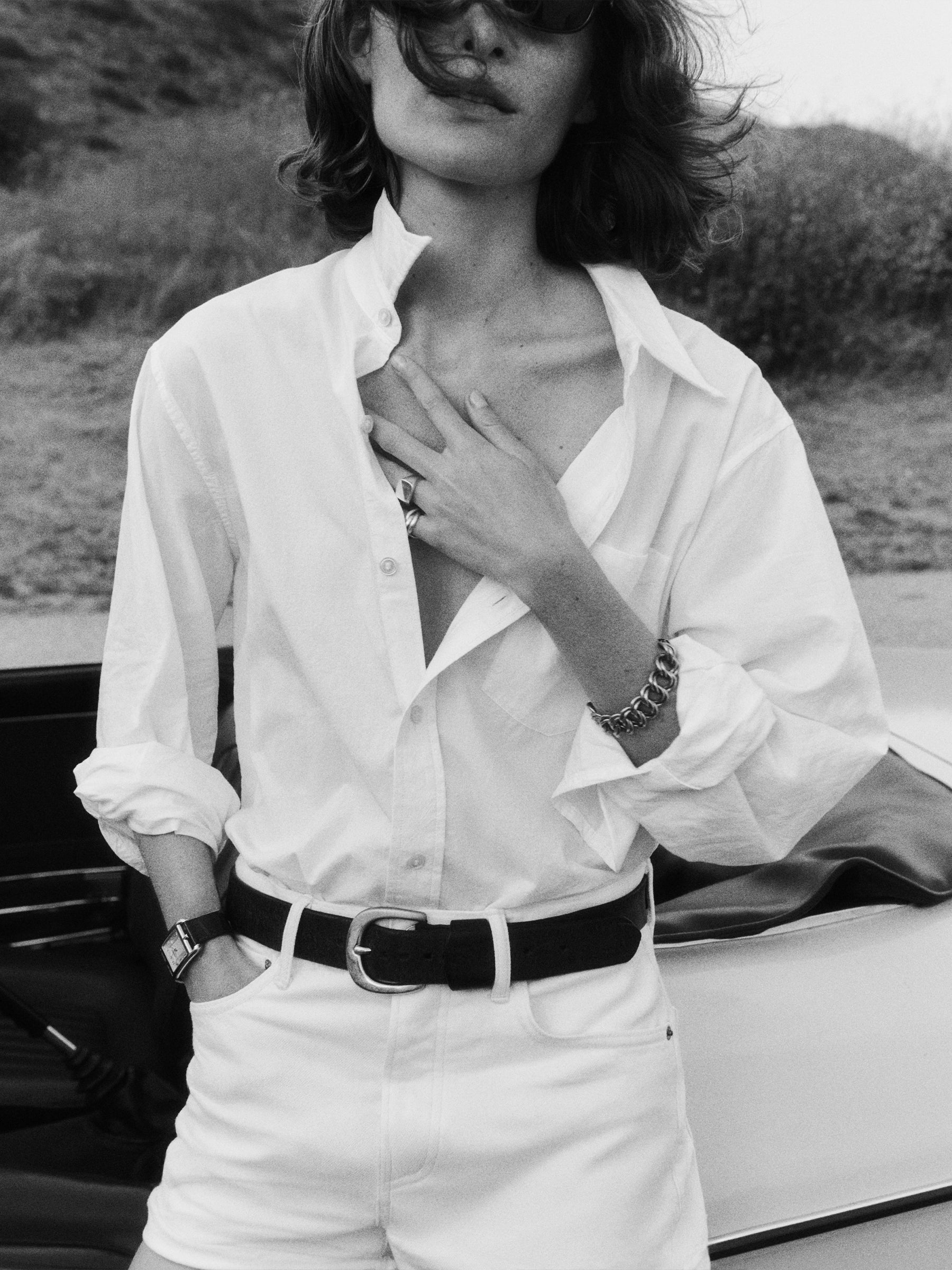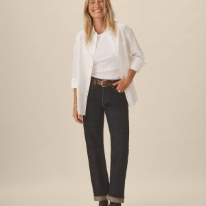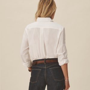 Relaxed button-down shirt in 3.7 oz. cotton plainweave. 29.5” length hits just below the hip. Details include a back yoke with box pleat, a single spade pocket, and pleated cuffs. Inspired by mid-century men’s shirting, this piece can be worn on its own, layered over a tee, or paired with our Rider Pant. Garment washed with softener for a lived-in feel.