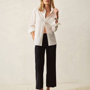 Mid-rise cropped trousers, cut from 100% Japanese wool. Featuring front slash pockets and back welt pockets with a single button closure. Finished with horn buttons, a hook and bar fastener, and a stay button.