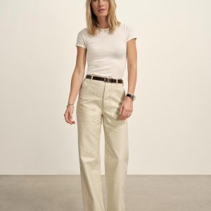 Relaxed fatigue pant with a 32” inseam and a classic high-waist that sits above the navel. Cut from 8 oz cotton reverse sateen with a streamlined Hollywood waistband with a full leg from the thigh down. Features two front patch pockets, two patch and flap back pockets, corozo buttons, and a button fly. Garment dyed and washed with softener for a lived-in feel.