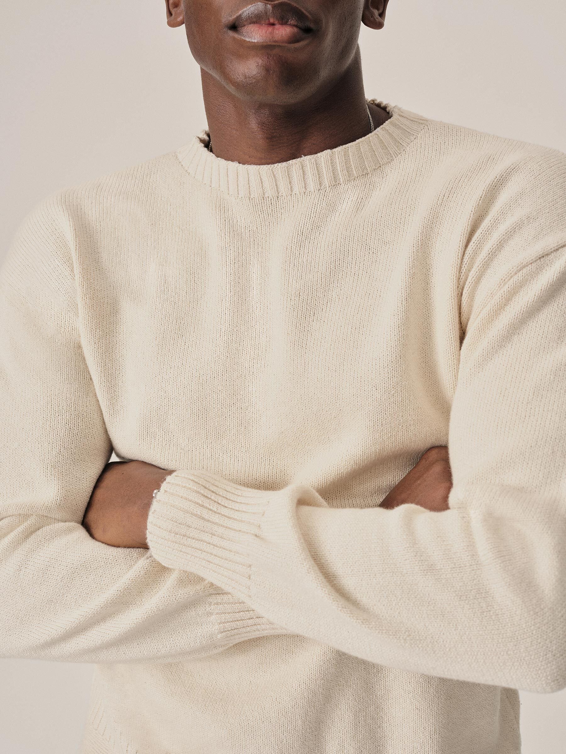 In the spirit of traditional fishermen knits, our Seafarer Guernsey is constructed with a boxy, jersey knit cotton body that features a shallow sleeve cap, side venting at the hem, and 2×2 ribbing at sleeves and cuffs.