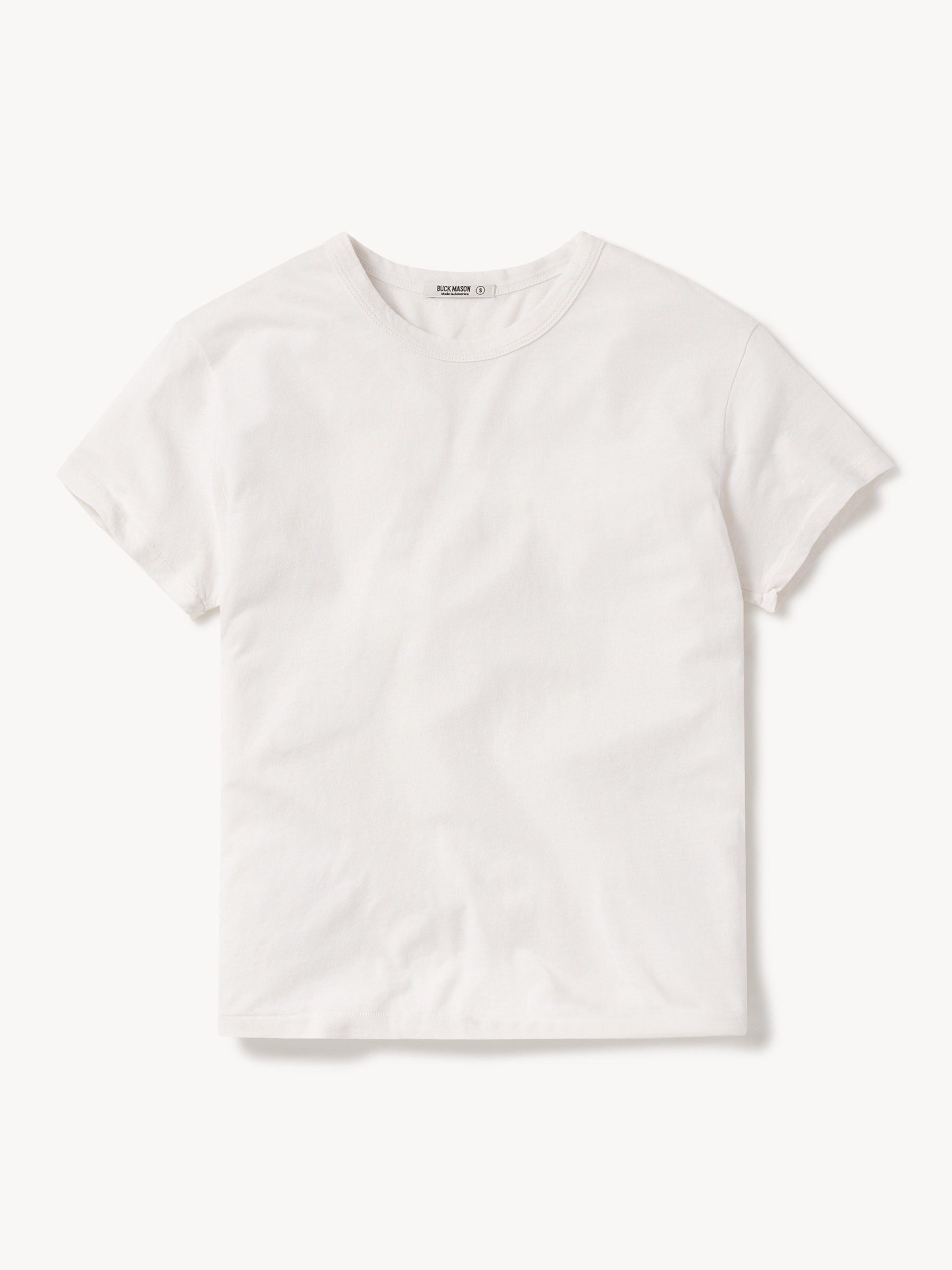 Classic fit short sleeve crewneck tee with a straight hem, cut from 125 GSM cotton with light slub texture. Constructed with self neck binding and ladder stitch detailing at the hems. Garment dyed and washed with softener for a lived in feel.