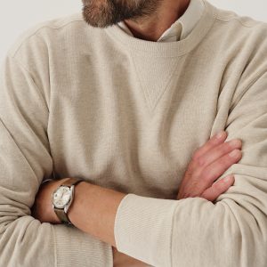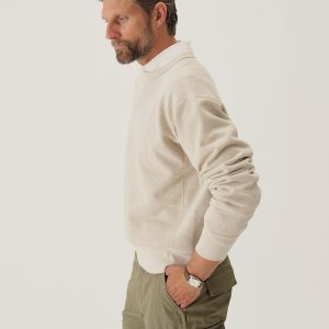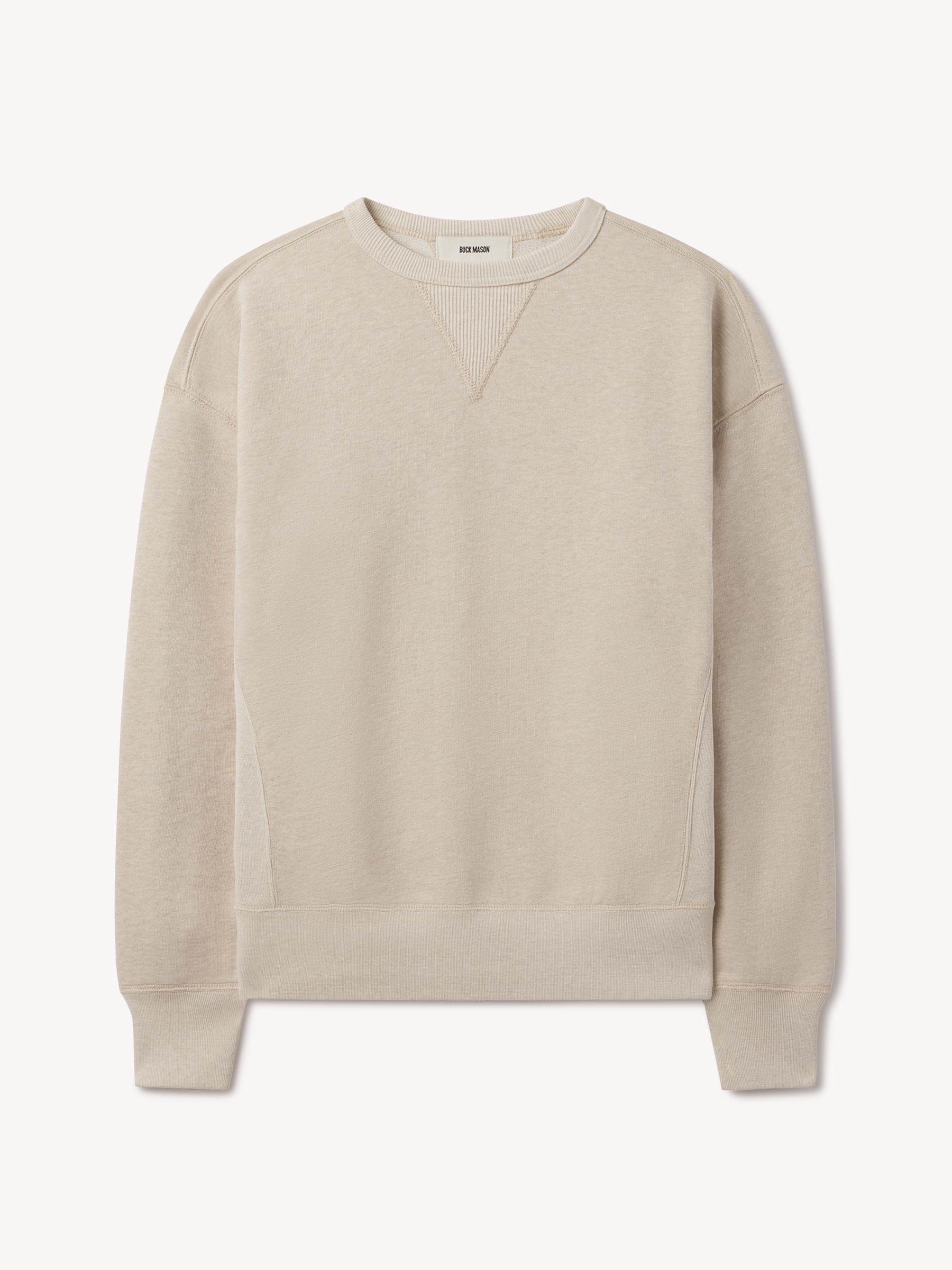 A midcentury-inspired crewneck sweatshirt made from plush, not-too-heavy, not-too-light, welterweight French terry. Features a “V” detailing at the front and back neck opening that was commonly found on sweatshirts from the 1940s and 50s.