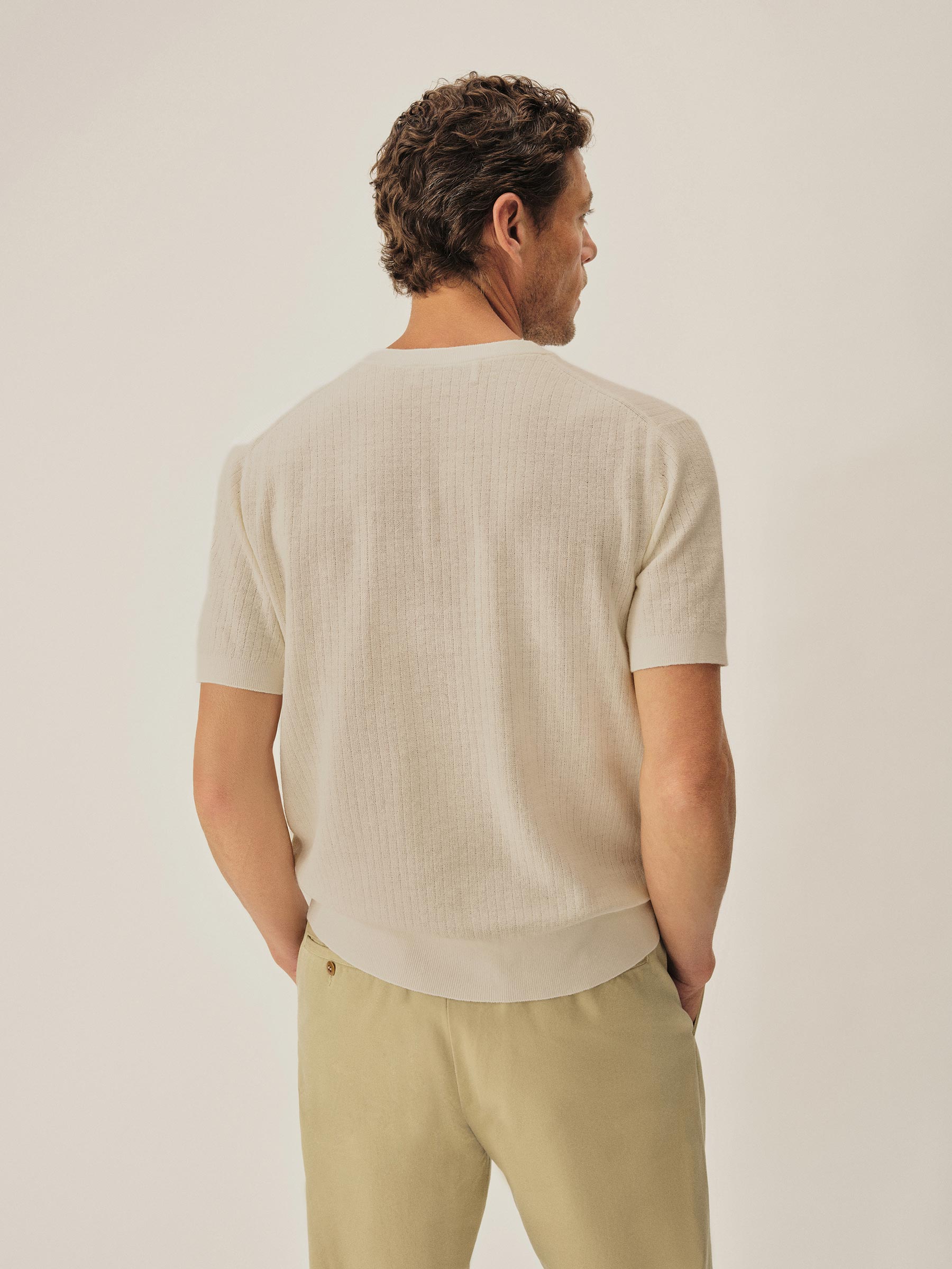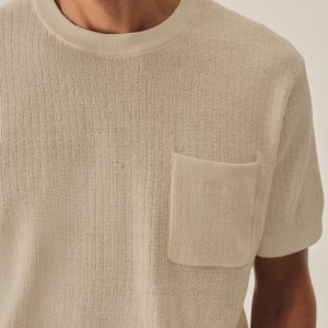 A classic fit tee in a fine knit drop-needle rib construction. Made from 12 gauge yarn-dyed hemp/cotton blend that wicks moisture and breathes easily. Chest pocket with ribbed opening. Finished with a 1×1 rib at collar, cuffs and waistband. A versatile summer layer inspired by vintage rib tees.